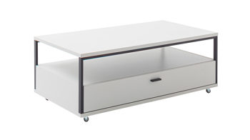 mit einer Schublade, einem offenen Fach und Rollen