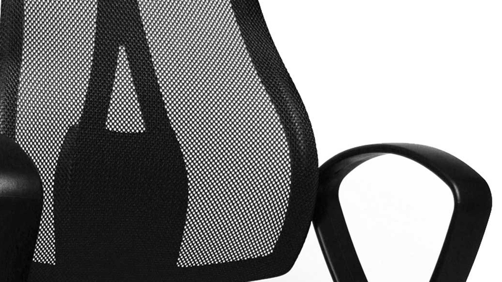 Der Bürostuhl zeichnet sich durch eine mit atmungsaktivem, schwarzem Netzbezug versehene Rückenlehne und einem bequemen Muldenflachsitz in Blau mit komfortabler Knierolle aus. Das in trendigem Lila bezogene Sitzpolster setzt unaufdringliche Farbakzente.