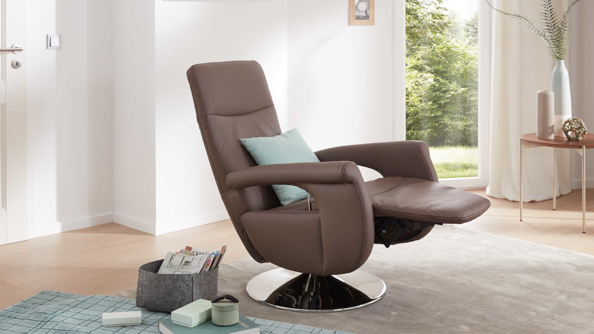 Zeit zum Entspannen. Machen Sie es sich bequem - auf Ihrem neuen Modulmaster Relaxsessel MM-PN1062. Dieses Modell verfügt über einen mokkafarben pigmentierten Lederbezug, den verchromten Tellerfuß V17 und eine Ton in Ton Kappnaht. Eine hochwertige Polyätherschaumpolsterung auf Wellenfederung sorgt für optimalen Sitzkomfort. Der Glattlederbezug ist pflegefreundlich und leicht zu reinigen.