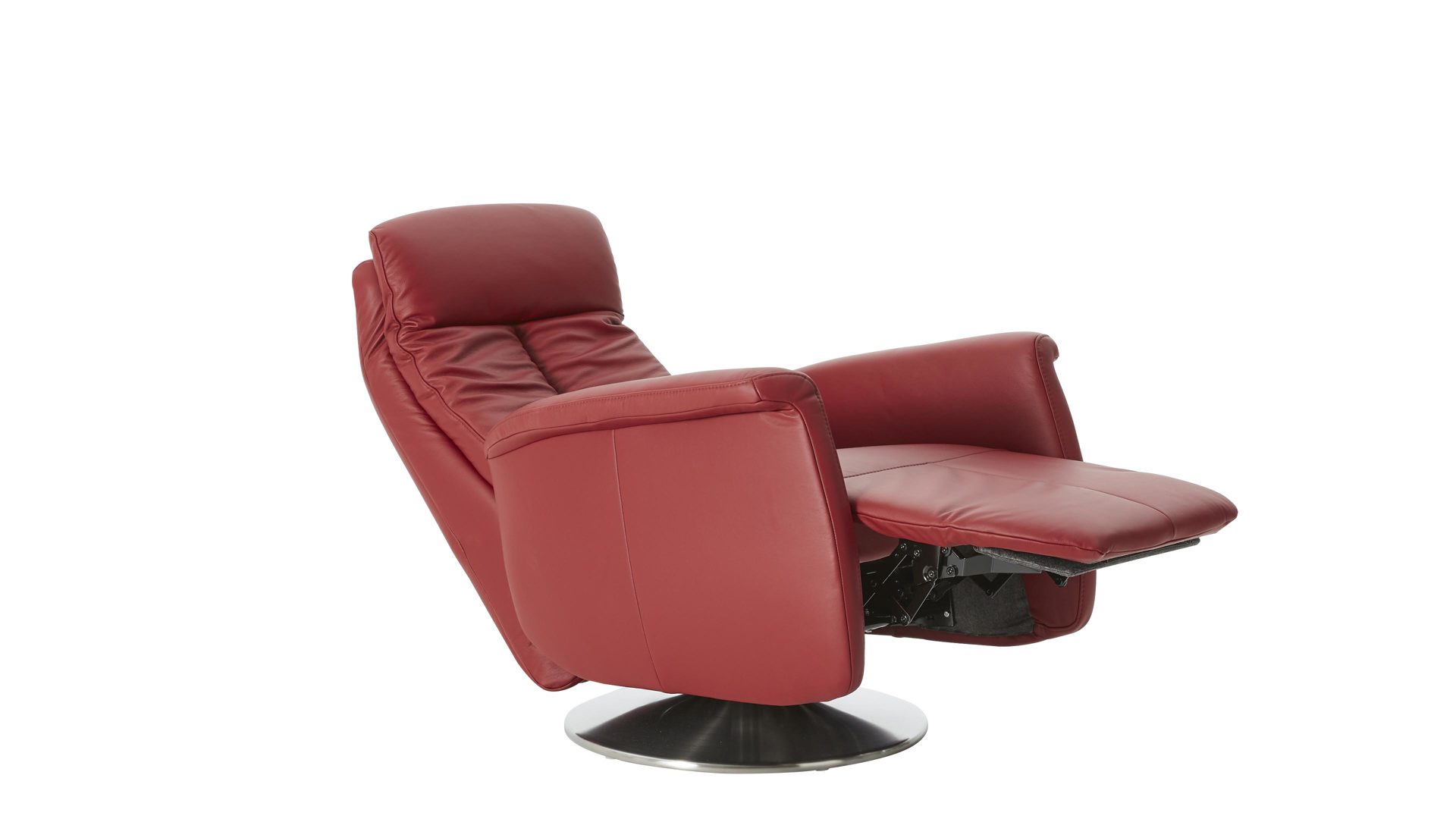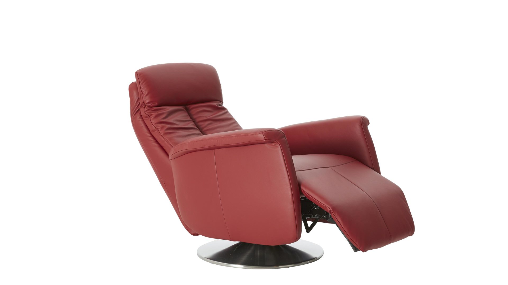 Der Modulmaster Relaxsessel MM-PN1035 kombiniert einen Edelstahl-Tellerfuß mit einem rossofarben pigmentierten Lederbezug auf der Rückenlehne D und der Armlehnvariante 2. Er strahlt intensive Eleganz aus und bringt warmes, einladendes Flair ins Wohnzimmer. Durch die erstklassigen, hervorragend verarbeiteten Materialien ist der modern designte Sessel robust und stabil, pflegeleicht und bei sorgsamer Behandlung besonders langlebig.