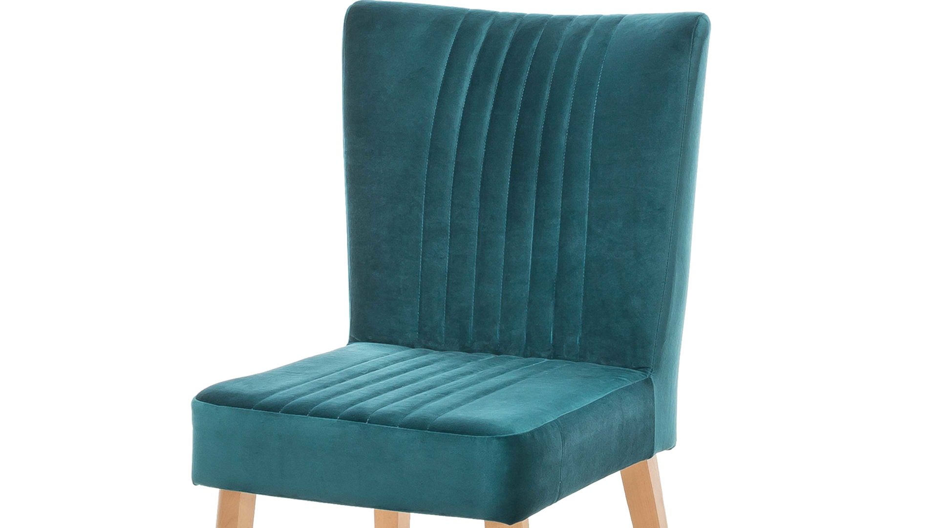 Ein farblicher Hingucker ist der hochwertige Polsterstuhl mit petrolfarbenem Bezug im modernen Samtlook. Aufwendige Steppnähte, die auf Sitz und Rücken angebracht sind, geben dem Sitzmöbel zusätzlich eine interessante Optik. Am besten passt der Polsterstuhl mit den Maßen von ca. 46 x 92 x 66 cm (BxHxT) an einen Esstisch aus Eiche, da auch das Holzgestell aus Eiche natur ist.
