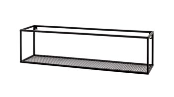 Dieses hochwertige Wandregal repräsentiert die Eleganz schlichter Modernität. Aus einem klassisch mattschwarz lackierten Metallgeflecht und Vierkantrohr-Metallrahmen gefertigt, erscheint es puristisch und ist dazu enorm robust und langlebig. Seine Maße betragen ca. 70 x 16 x 16 cm (LxHxT).