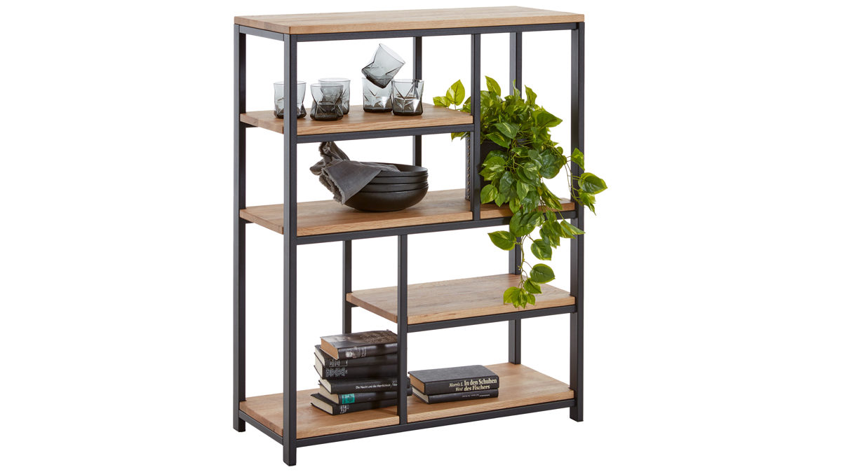 Durch die offene Gestaltung bringen Sie in diesem Regal Ihre Lieblingsbücher und schöne Accessoires hervorragend zur Geltung. Selbstverständlich können Sie das Wohnregal auch für andere Gegenstände verwenden, etwa für Filme und CDs. Die Maße des optisch wie funktional beeindruckenden Standregals belaufen sich auf ca. 85 x 108 x 36 cm (BxHxT).