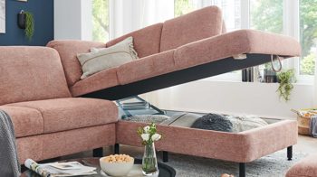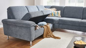 • Die Abbildung zeigt ein Wohnbeispiel, welches auch Dekoration sowie separat erhältliches Zubehör enthält. Im Lieferumfang enthalten ist die drellbezogene Schlaffunktion in der Type 2,5EL.