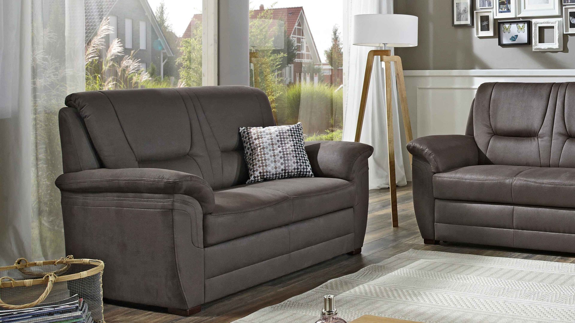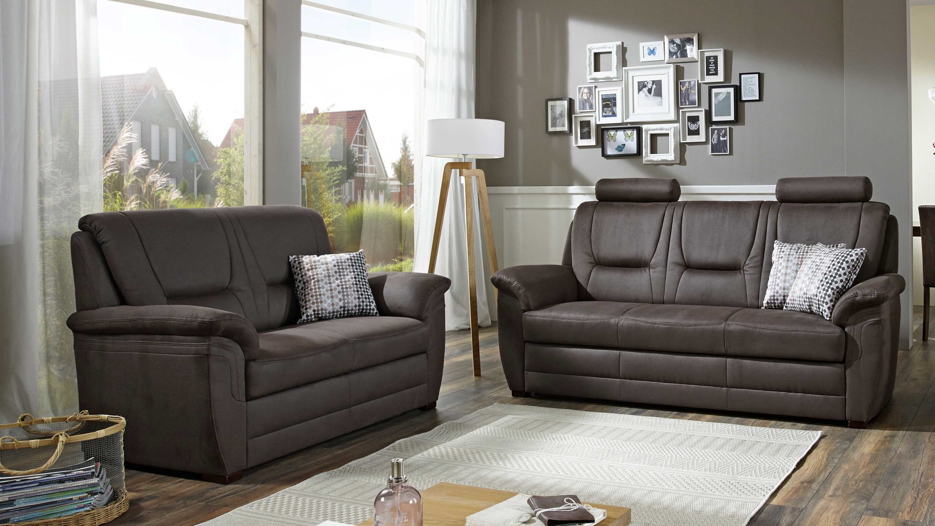 Dank der bequemen Superbonnellfederkernpolsterung im Sitz und der hochwertigen Polyätherschaumpolsterung im Rücken genießen Sie auf den Polstermöbeln hohen Komfort. Die Maße des Dreisitzers belaufen sich auf ca. 198 x 96 x 92 cm (BxHxT) und die des Zweisitzers auf ca. 146 x 96 x 92 cm (BxHxT), wobei die Sitzhöhe jeweils ca. 45 cm beträgt und die Sitztiefe bei ca. 53 cm liegt.