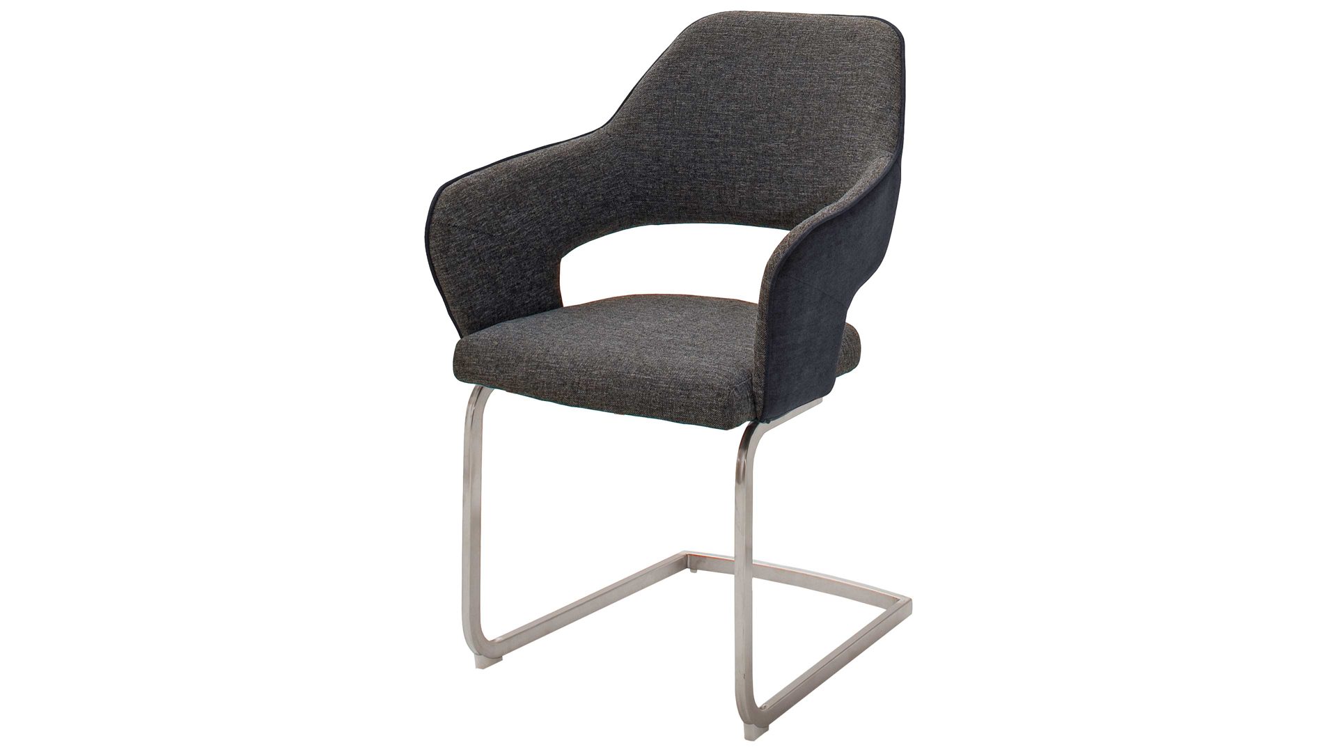 Als Basis fungiert ein gebürstetes Edelstahl-Kantrohrgestell. Es gewährleistet die nötige Robustheit und Stabilität. Die Außenflächen sind mit holzkohlefarbenem Feingewebe, die Innenflächen mit Flachgewebe im Farbton Holzkohle bezogen. Durch die klassisch-elegante Farb- und Materialgestaltung lässt sich der Stuhl wunderbar mit den verschiedensten Einrichtungsstilen kombinieren.