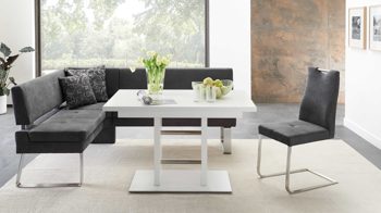 Der Esszimmerstuhl Dutona steht in zwei trendigen Farben zur Wahl. Ergänzend ist in der Shoppingwelt ein passender Auszugtisch erhältlich.
