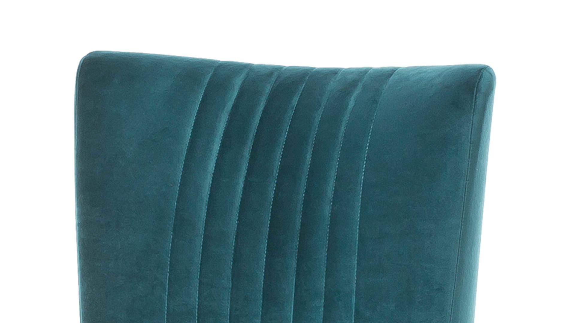 Ein farblicher Hingucker ist der hochwertige Polsterstuhl mit petrolfarbenem Bezug im modernen Samtlook. Aufwendige Steppnähte, die auf Sitz und Rücken angebracht sind, geben dem Sitzmöbel zusätzlich eine interessante Optik. Am besten passt der Polsterstuhl mit den Maßen von ca. 46 x 92 x 66 cm (BxHxT) an einen Esstisch aus Eiche, da auch das Holzgestell aus Eiche natur ist.