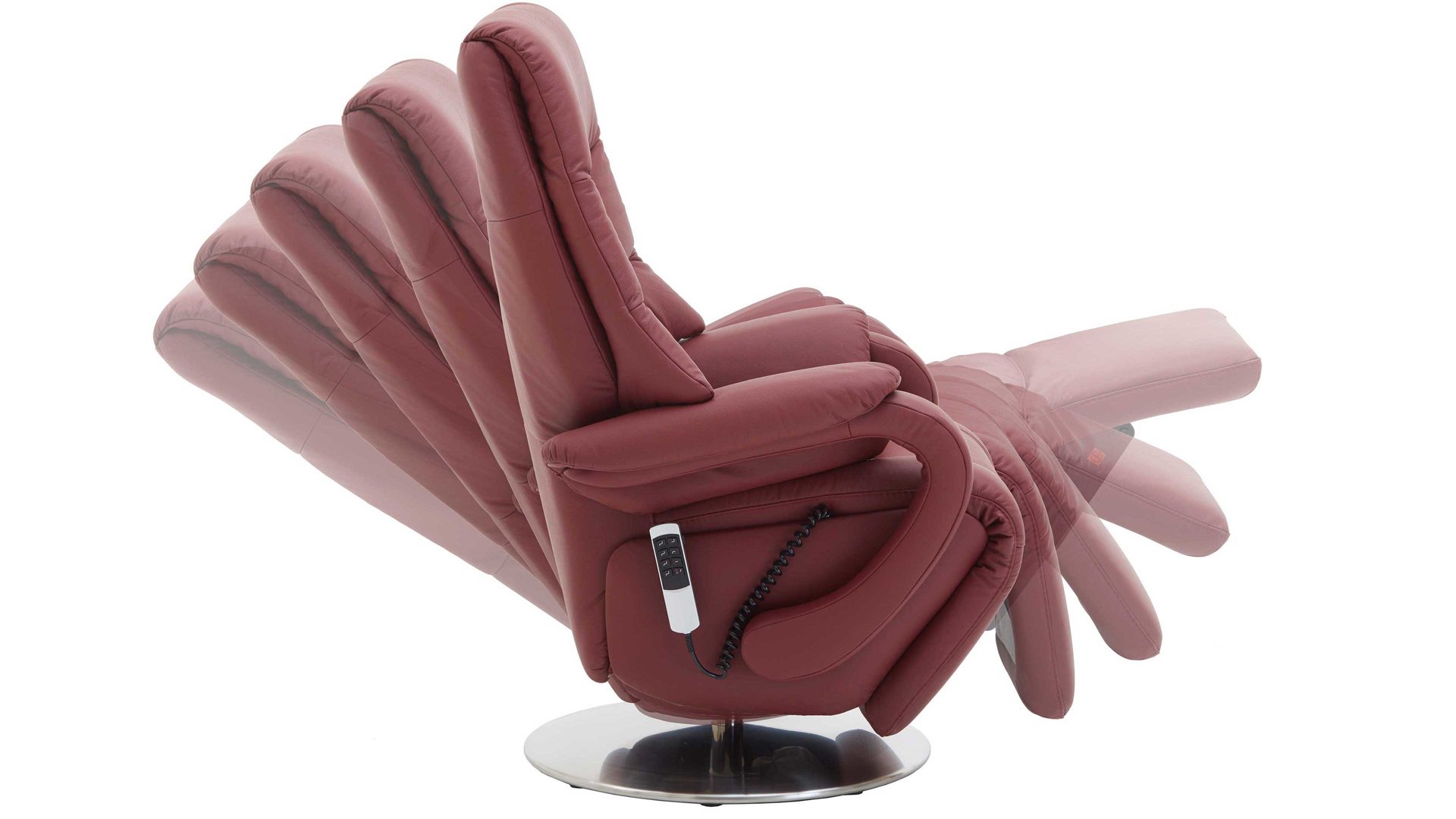 Dieser Relaxsessel kombiniert einen robusten glänzenden Edelstahl-Tellerfuß mit einem stilvollen merlotfarbenen LongLife-Lederbezug. Durch die top aufeinander abgestimmten Materialien und Farben strahlt der Fernsehsessel moderne Eleganz aus. Für die nötige Stabilität sorgt der Stahlrohrrahmen. Er macht den TV-Sessel bis 130 kg belastbar. Die Maße des hochwertig verarbeiteten Relaxsessels belaufen sich auf ca. 80 x 116 x 80 cm (BxHxT), bei einer Sitzhöhe von ca. 49 cm und einer Sitztiefe von ca. 55 cm.