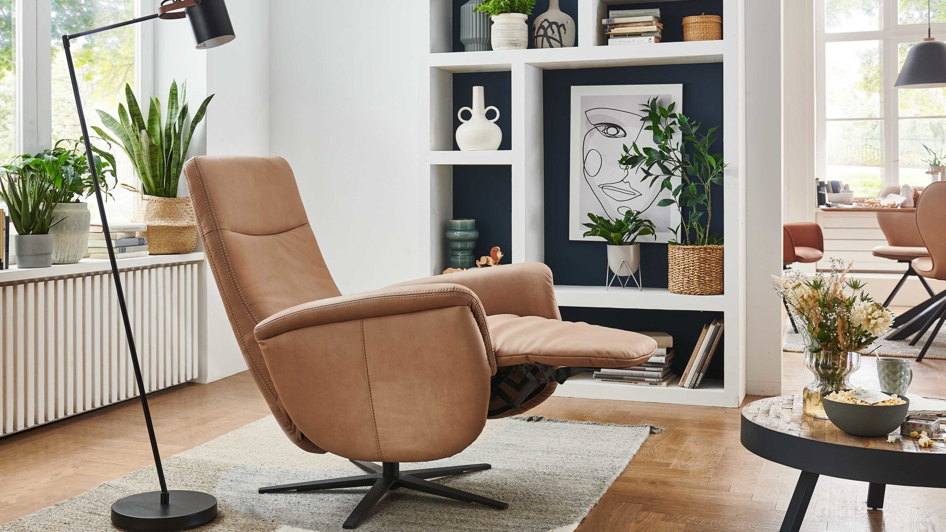 Indem Sie leichten Körperdruck ausüben, senken Sie den Rücken. In der Folge geht der Sitz automatisch nach vorn und oben. Gleichzeitig fährt die Beinauflage nach oben, bis die entspannende Relaxposition erreicht ist. Zu den funktionalen Höhepunkten gehört überdies die stufenlose Kopfpolsterverstellung. Zudem ist der Fernsehsessel um 360 Grad drehbar.