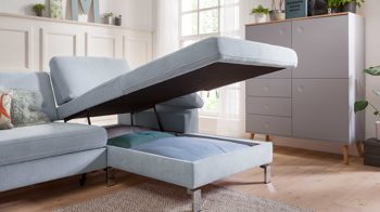 Freuen Sie sich zudem auf eine Sitztiefenverstellung in zwei Positionen, die bereits im Preis inkludiert ist. Diese Eckkombination bietet Ihnen eine angenehme Sitzhöhe von ca. 45 cm sowie eine Sitztiefe von ca. 56 bis 70 cm. Wählen Sie aus sechs Fußvarianten, drei Armlehnvarianten und zwei Sitzqualitäten Ihre Lieblingskombination aus. Darüber hinaus wartet eine attraktive Bezugauswahl auf Sie. Gegen Mehrpreis ist das Ecksofa auch mit weiteren Funktionen und Kissen erhältlich. Eine Artikelvariante ist mit der Produktnummer 484014 lieferbar.