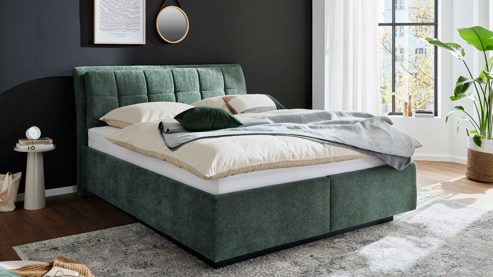 Interliving Bettensystem Serie 1420 – Polsterbett mit Bettkästen in Moosgrün
