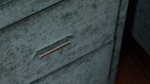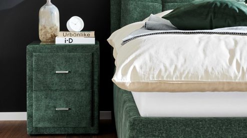 Kombiniere die Nachtkommode idealerweise mit dem passenden Polsterbett der Serie, um ein stimmiges Gesamtbild zu erzielen.