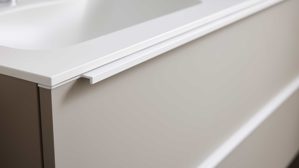 Alle Möbel verfügen über pflegeleichte Anti-Fingerprint-Oberflächen, die deinen Badalltag spürbar erleichtern. Das Badmöbel-Set ist Teil eines individuell planbaren Badmöbelprogramms und kann gegen Mehrpreis mit LED-Beleuchtung und passendem Zubehör ergänzt werden – für noch mehr Komfort und Atmosphäre.