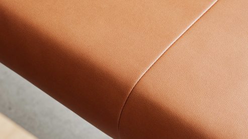 Der Bezug aus caramelfarbener Mikrofaser in edler Lederoptik verleiht der Eckbank eine warme, einladende Ausstrahlung. Die samtige Oberfläche fühlt sich angenehm weich an, ist aber gleichzeitig strapazierfähig und pflegeleicht – perfekt für den täglichen Gebrauch. Rückenlehnen und Bankelemente sind rundum im Originalstoff bezogen, sodass sich die Bank auch freistehend elegant präsentieren lässt.