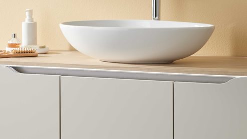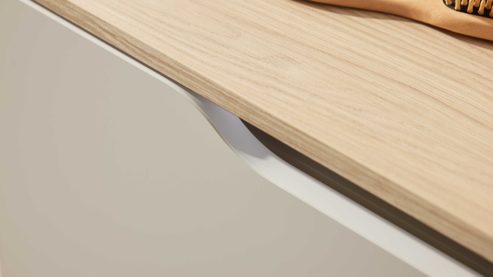 Das Basis-Set aus der Interliving Bad Serie 3720 ist die perfekte Wahl, wenn du Wert auf modernes Design, durchdachte Funktionalität und hochwertige Materialien legst. Die Kombination aus matt sandfarbenem Lacklaminat, weißen Griffmulden, Eiche Como-Nachbildung und einem hochglänzenden Keramik-Waschbecken schafft eine harmonische, natürliche Atmosphäre mit zeitlosem Charakter.