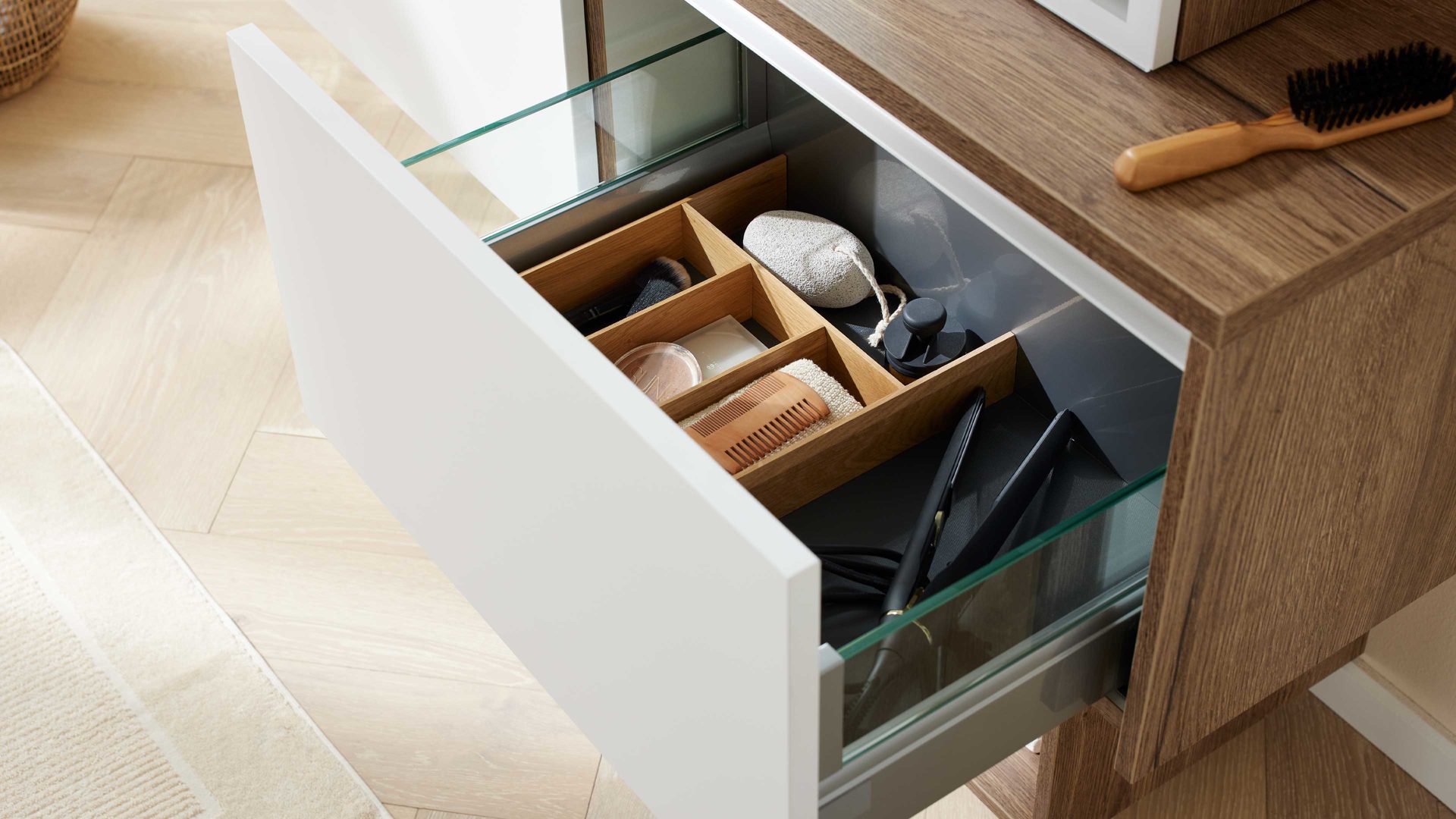 Die Interliving Bad Serie 7357 ist ein individuell planbares Badmöbelprogramm, das klimaschonend in Deutschland produziert wird. Hochwertige Materialien, modernes Design und flexible Kombinationsmöglichkeiten machen diese Serie zu einer langlebigen und stilvollen Wahl für dein Bad.