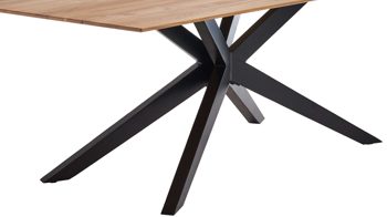 Die Tischplatte ist nicht nur durch das erstklassige Material, sondern auch durch die Facettenkanten das absolute Highlight des Speisetisches, dessen Maße sich auf ca. 220 x 100 cm (BxT) belaufen. Auch das Sterngestell begeistert: Es verleiht dem Esszimmertisch optisch das gewisse Etwas und bietet zudem viel Beinfreiheit.