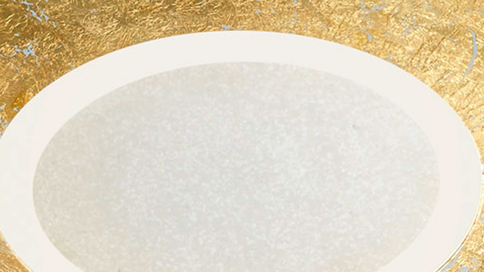 Die runde TRIO LED-Deckenleuchte Chiros ist aus goldfarbenem Metall hergestellt. Durch die edle, außergewöhnliche Kombination der Form, des Materials und der Farbe mit der bewusst eingearbeiteten Gebrauchsspuren-Optik strahlt die Lampe antiken Retro-Charme aus. Besonders fantasievolle Betrachter erinnert die Leuchte möglicherweise auch an einen faszinierenden Weltall-Planeten für zuhause.