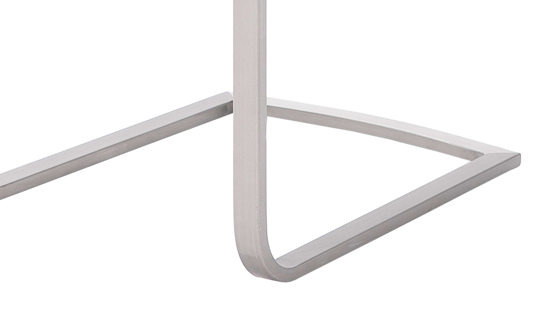 Das komfortable Sitzmöbel in Grau besticht im zeitlosen sowie geradlinigen Design und ist die perfekte Sitzgelegenheit für Ihren einladenden Essbereich. Sowohl in der Küche als auch im Esszimmer sitzen Sie und Ihre Gäste äußerst bequem auf dem Freischwinger, der mit pflegeleichtem, grauem Kunstleder und einem stabilen, gebürsteten Flachrohrgestell aus Edelstahl ein Schwingstuhl für die ganze Familie ist. Dank der praktischen Griffmulde in der Rückenlehne versetzen Sie den Polsterstuhl einfach dorthin, wo Sie ihn benötigen.
