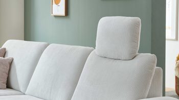 Sie lässt sich manuell in der Höhe und Neigung verstellen. Die mitgelieferte Kopfstützen-Vorrichtung aus robustem verchromten Metall ermöglicht die stufenlose Fixierung der Kopfstütze, deren Maße sich auf ca. 60 x 28 x 23 cm (BxHxT) belaufen. Mit dem naturweißen Feincordbezug harmoniert das Kopfpolster perfekt mit den Couches im gleichen Design.