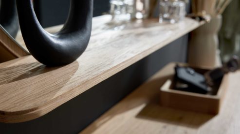 Die Möbel der Interliving Garderoben Serie 6014 zeichnen sich durch eine besondere Liebe zum Detail aus: leise schließende Türen mit Softclose-Technologie und Schubladen mit Selbsteinzug sorgen für einen hohen Bedienkomfort im Alltag. Alle Möbelstücke, inklusive Spiegel, sind bereits fertig montiert – für eine einfache und schnelle Einrichtung.