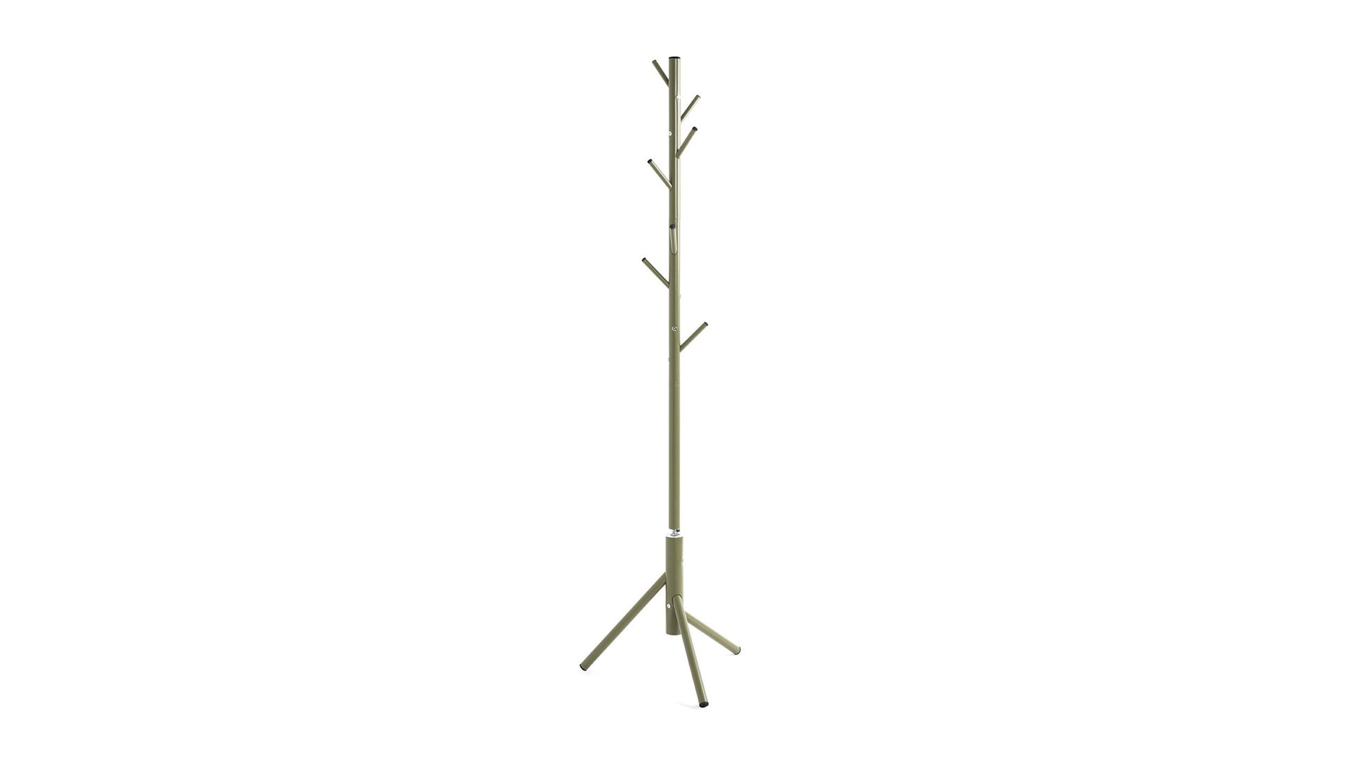 Der Garderobenständer ist der ideale Begleiter für einen aufgeräumten Eingangsbereich. Mit seinem stabilen, grün lackierten Metallgestell und den acht Garderobenhaken bietet er ausreichend Platz für Jacken, Mäntel und Accessoires.