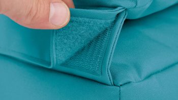 Durch seine dicht gewebte Struktur ist der Stoff besonders widerstandsfähig, unempfindlich gegenüber Nässe und leicht zu reinigen. Eine zusätzlich aufgebrachte PVC-Beschichtung auf der Innenseite des Stoffes macht scuba® zudem extrem robust und reißfest. Zugleich ist er angenehm weich und bequem. Der schwer entflammbare Bezug macht den Sessel zum perfekten Begleiter für Garten, Terrasse und Balkon. Ist die Füllung entfernt, lässt sich der Bezug bei 40 Grad im Schonwaschgang waschen.