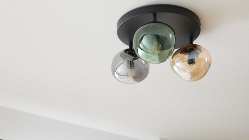 Die drei Glasschirme streuen das Licht angenehm und sorgen für eine wohnliche, harmonische Ausleuchtung. Mit ca. 39 cm Durchmesser und ca. 19 cm Höhe fügt sich die Wohnraum-Deckenlampe auch in kleinere Räume mühelos ein – stilvoll, zurückhaltend, trotzdem ein Blickfang.