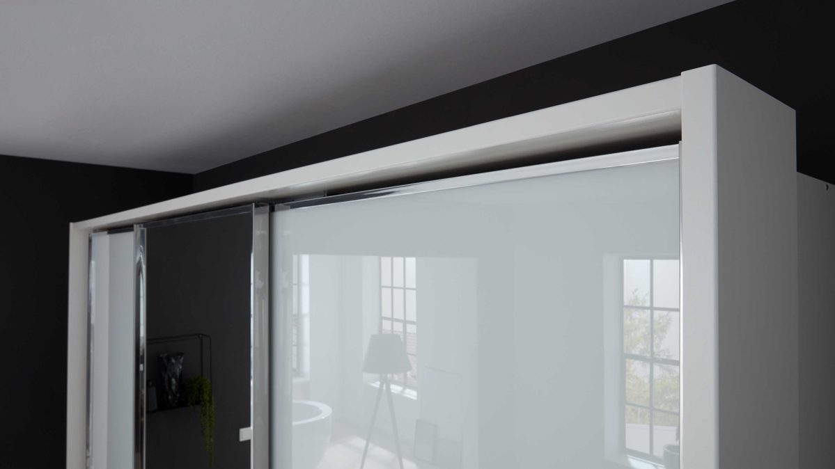 Der Rahmen ist exakt auf den ca. 300 cm breiten Schwebetürenschrank zugeschnitten und integriert ihn formschön in deine Schlafzimmergestaltung. Das Ergebnis ist ein edles, harmonisches Gesamtbild. Mit seiner pflegeleichten Oberfläche in elegantem Weiß harmoniert der Rahmen ideal mit modernen Schlafzimmermöbeln. Er betont Glas- und Spiegelfronten der Serie 1205 und vermittelt ein ruhiges, stilvolles Raumgefühl.