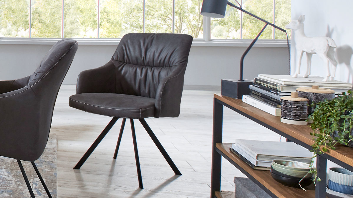 anthrazitfarbener Mikrofaserbezug und mattschwarzes Eisen