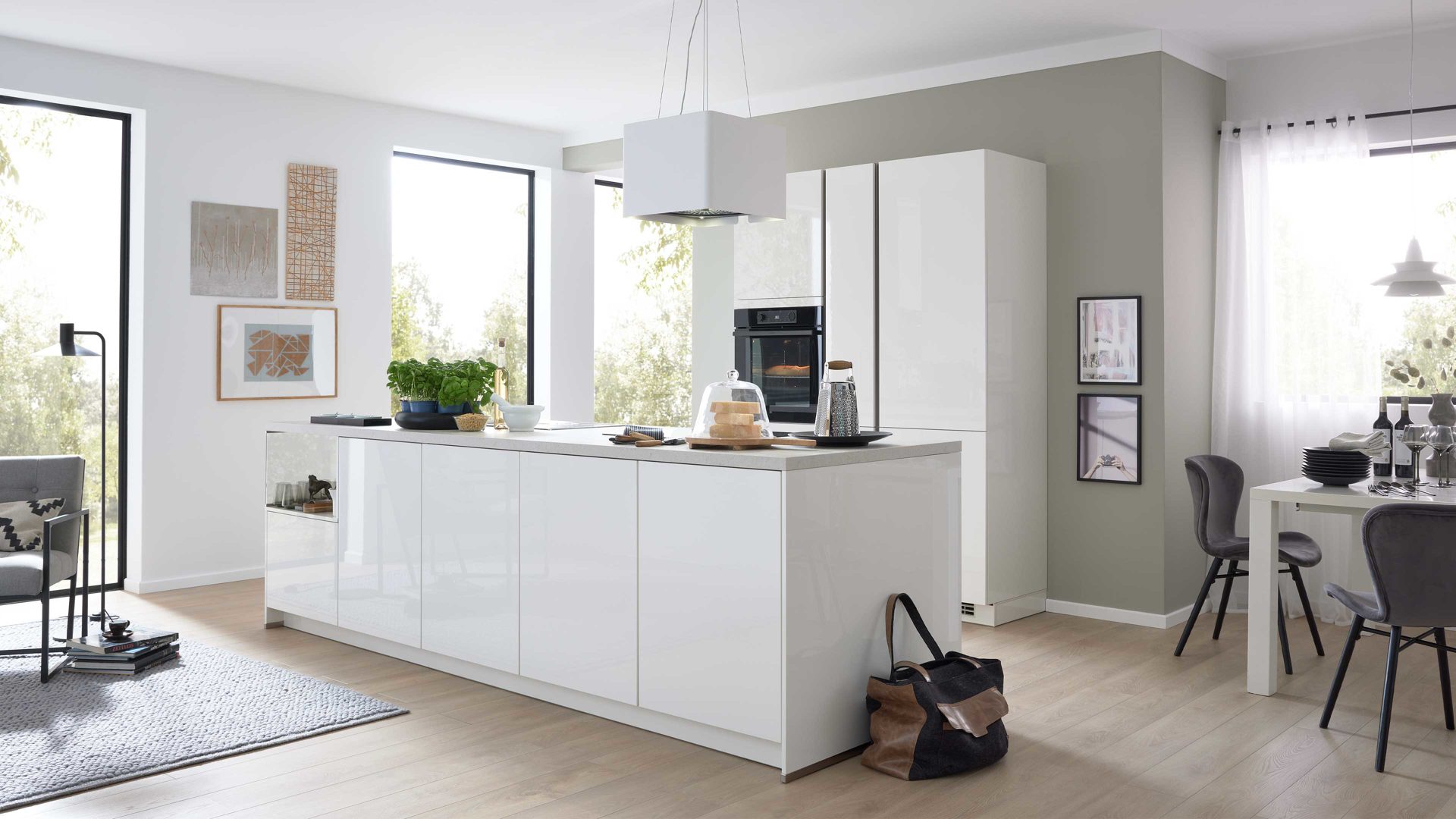 Culineo® Einbauküche C648 mit AEG Einbaugeräten – elegante Hochglanzküche in Weiß