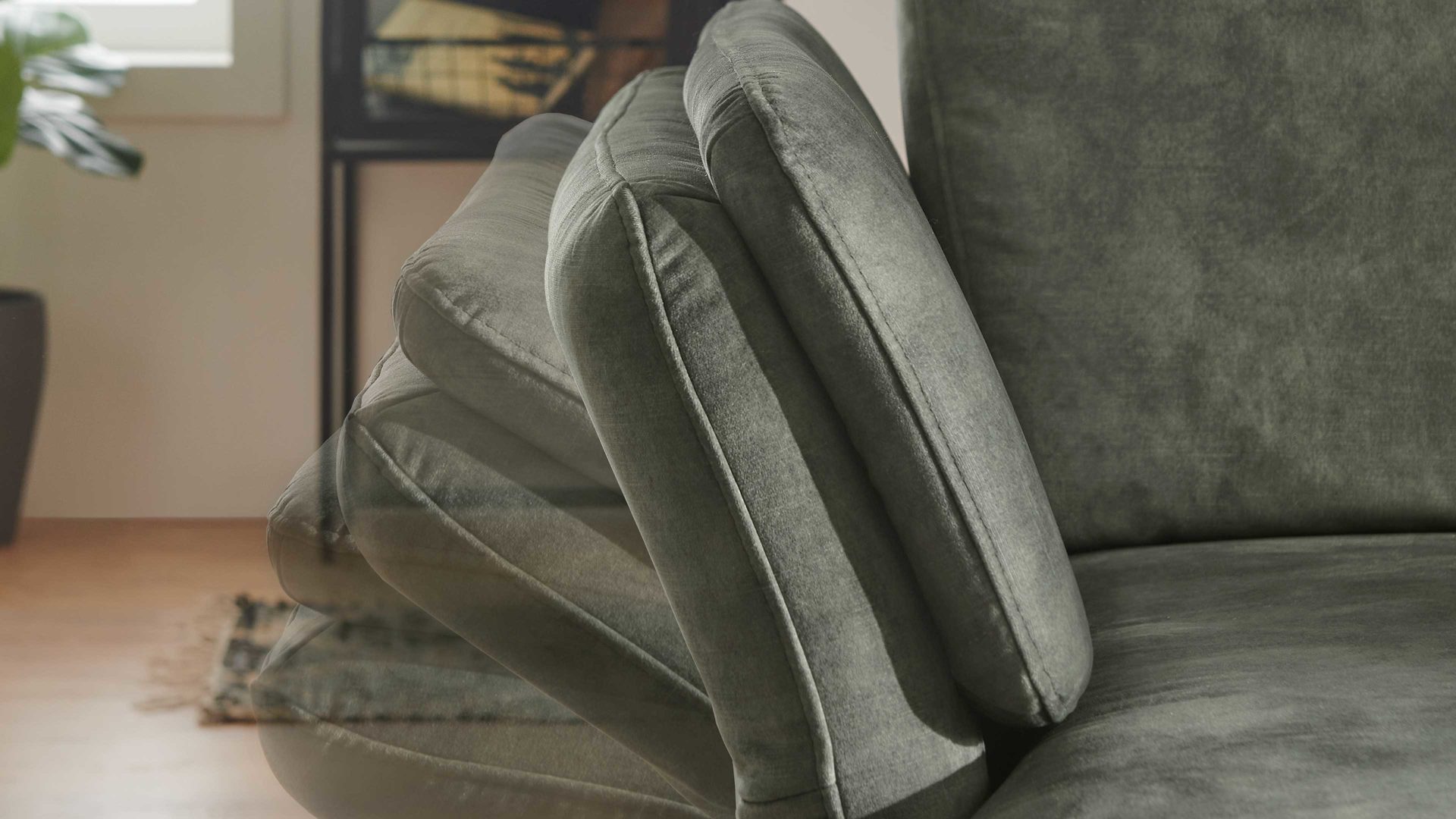 moosfarbener Velours Amira & schwarze Metallfüße - Stellfläche ca. 346 x 227 cm