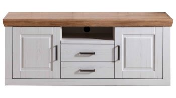 Bei der Vitrine 12 aus dem Wohnprogramm Brixen begeistern sowohl die optischen als auch die funktionalen Merkmale. Sie kombiniert Pinie Aurelio-Nachbildung mit Grandson Oak-Nachbildung. Durch die Farben und die spezielle Frontgestaltung erscheint das Wohnmöbel im angesagten skandinavischen Landhausstil. Eine geschroppte Rückwand, die ebenfalls in Pinie Aurelio-Nachbildung gehalten ist, sorgt zusammen mit dem Klarglaseinsatz für weitere herausragende Akzente. Klassische Metallgriffe runden das ausdrucksstarke Design stilvoll ab.