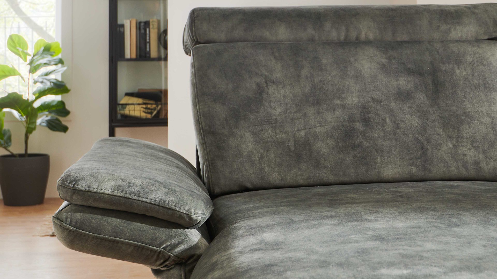 moosfarbener Velours Amira & schwarze Metallfüße - Stellfläche ca. 346 x 227 cm