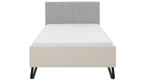 Das Bettgestell mit sandgrauen Bettseiten, grauem Polsterkopfteil und mattschwarzen Metallfüßen wird zum stilvollen Mittelpunkt deines Zimmers. Die Liegefläche beträgt ca. 120 x 200 cm (BxL), die Gesamtmaße liegen bei ca. 127 x 105 x 213 cm (BxHxL). Matratze und Lattenrost sind nicht im Lieferumfang enthalten. Das Bettgestell fügt sich perfekt in das mitwachsende Jugendzimmer-Konzept ein und lässt sich ideal mit weiteren Möbeln der Serie kombinieren.