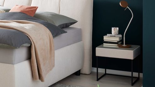 Wie alle Möbel der Interliving Boxspringbett Serie 1420 ist auch diese Nachtkonsole Teil eines modularen Systems. Du hast die Wahl zwischen verschiedenen Nachtkästchen-Varianten, Kopfteilen, Stoffen, Fußdesigns und Zubehör – zum Beispiel passende Tagesdecken, Kissen oder zusätzliche Schlafzimmermöbel. So gestaltest du dein Schlafumfeld ganz individuell und stimmig.