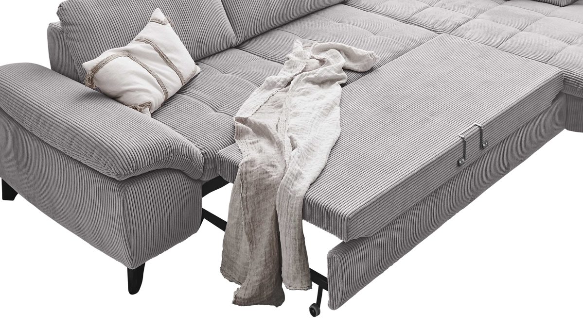 die Liegefläche (ca. 219 x 132 cm, BxL) wird ohne Aufpreis im gleichen Stoff wie das Sofa bezogen