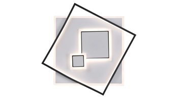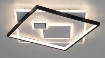 mattweißes Metall, kombiniert mit mattschwarzem Metall und weißen Acryl-Leuchtmittelabdeckungen