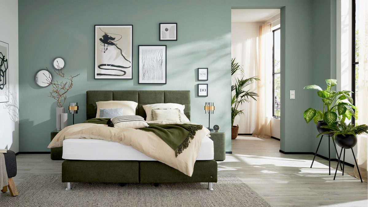 Luxuriöser Schlaf – das moosgrüne Boxspringbett aus der Interliving Boxspringbett Serie 1402