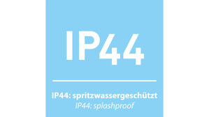 Schutzklasse IP44 - spritzwassergeschützt, die Lampe lässt sich auch in Badezimmern oder Küchen einsetzen