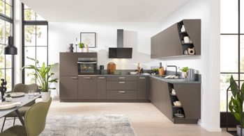 Interliving Küche Serie 3064 – stilvolle L-Küche in Sepiabraun und Lavagrau