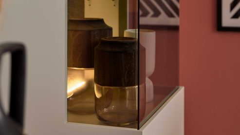 Die LED-Beleuchtung 47 05 MH 95 ist ein optionales Zubehör gegen Mehrpreis für ausgewählte Elemente der Interliving Wohnzimmer Serie 2030 PLUS. Mit diesem zweiteiligen Set setzen Sie gezielte Lichtakzente und beleuchten die Rückwände Ihrer Wohnmöbel indirekt, stilvoll und wirkungsvoll.