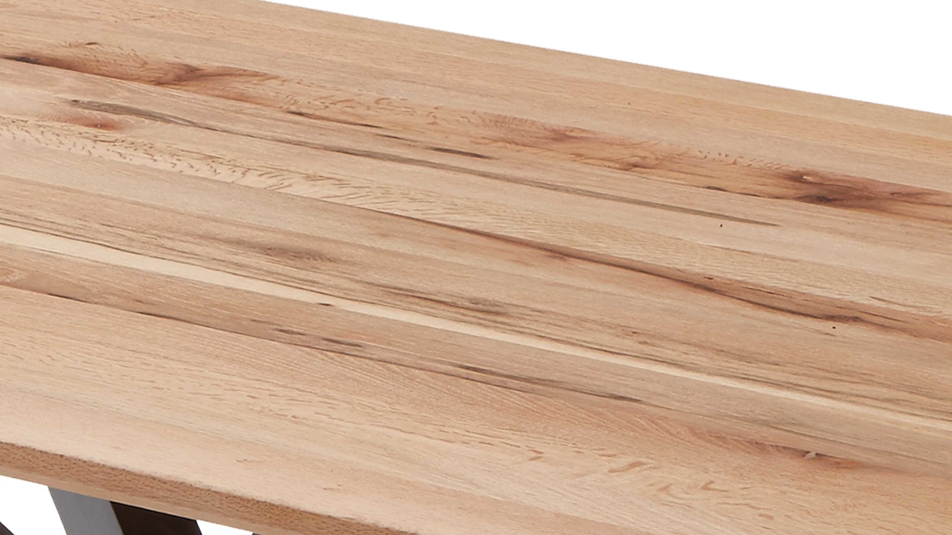 Den Höhepunkt des Esszimmertisches bildet die Massivholz-Tischplatte mit Facettenprofil. Sie besteht aus strukturgehobelter Balkeneiche mit charakteristischen Gebrauchsspuren, die ihr und dem gesamten Tisch das gewisse Etwas verleihen. Die Maße des stilvollen Holzplattentisches Windhoek belaufen sich auf ca. 200 x 76 x 100 cm (LxHxB). Alternativ ist er noch in zwei weiteren Größen erhältlich.