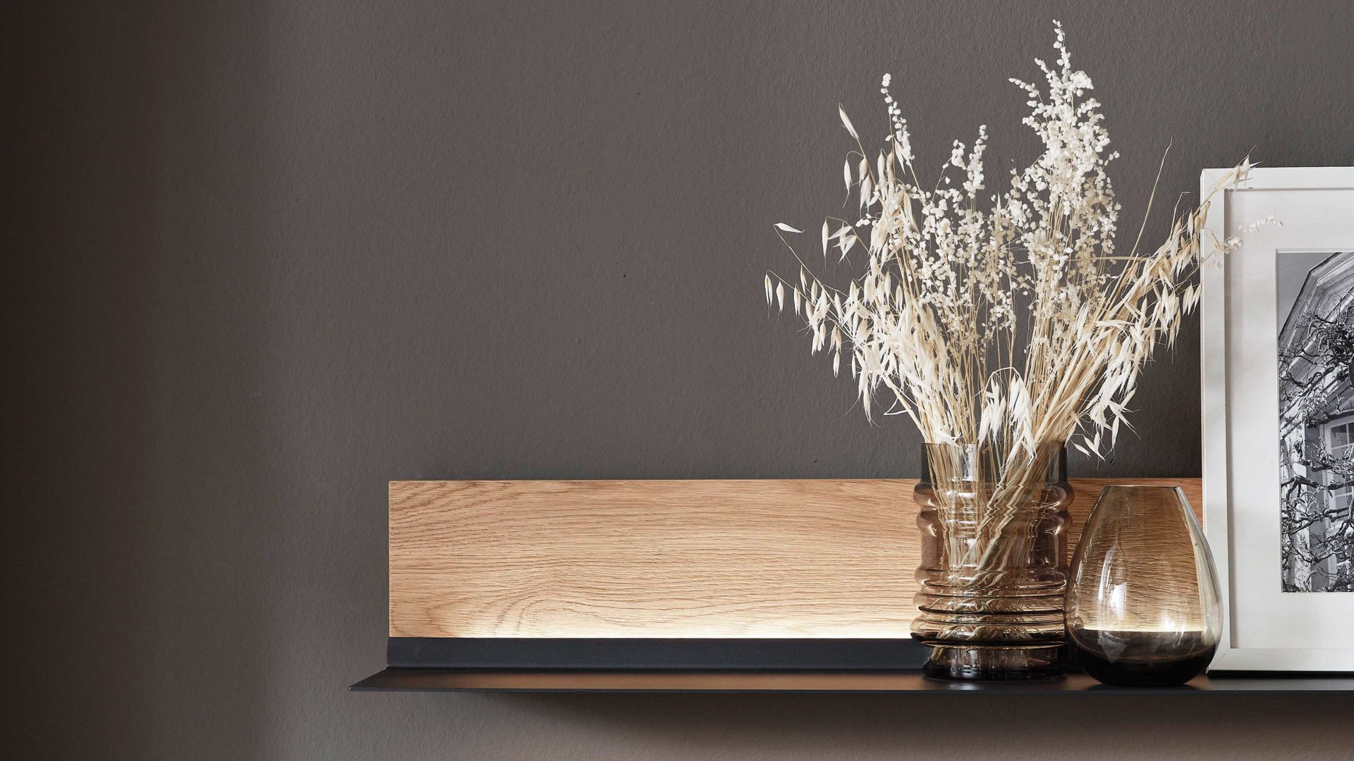 soft gebürstete Wildeiche und carbonfarben pulverbeschichtetes Metall