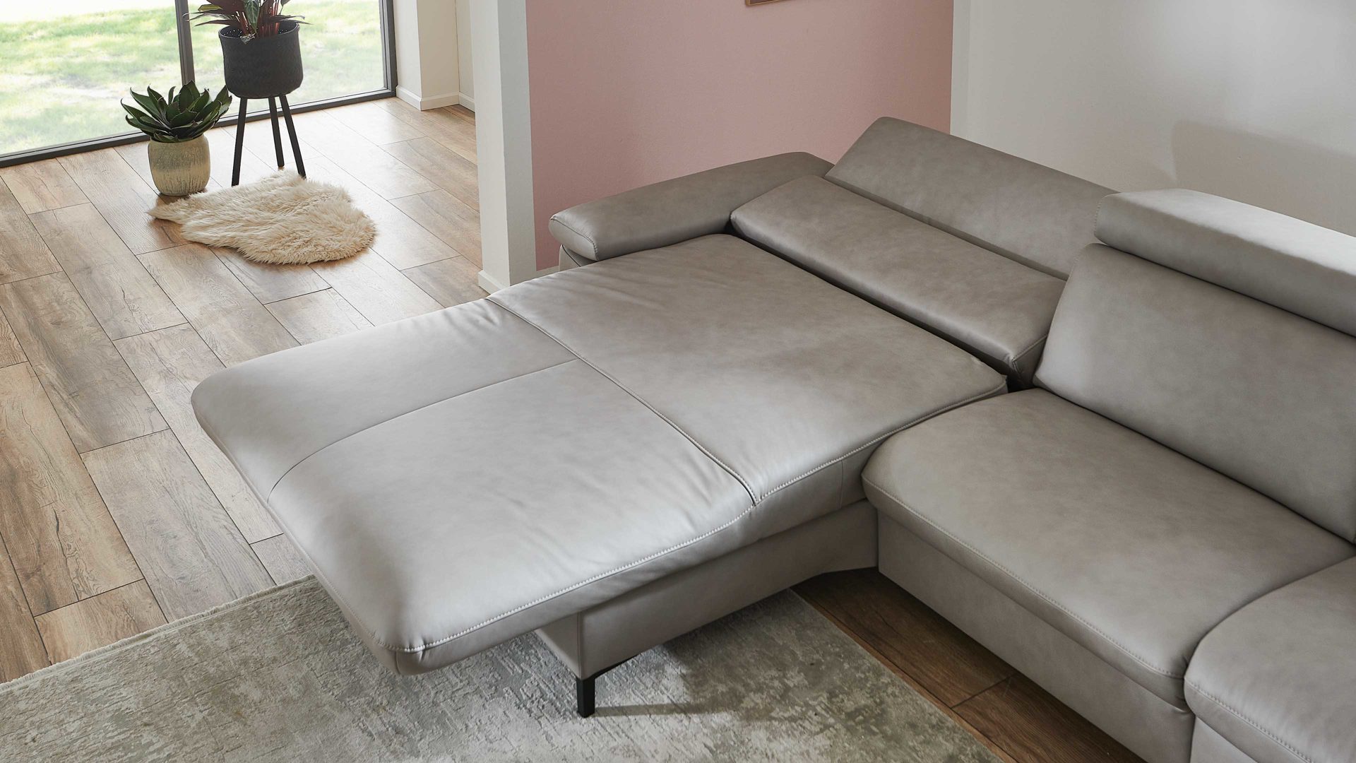 Die motorische Liegefunktion MoLi ist ein Funktions-Mehrpreis für Canapés aus der Modulmaster-Polsterserie MM-PN1161. Sie ermöglicht es, die Rückenlehne per Knopfdruck bis zur abgeschrägten Liegeposition zu verstellen. Zur Bedienung der Funktion nutzen Sie einen Kabelhandschalter. Für zusätzlichen Komfort ergänzen Sie die Liegefunktion mit einer Kopfteilverstellung.