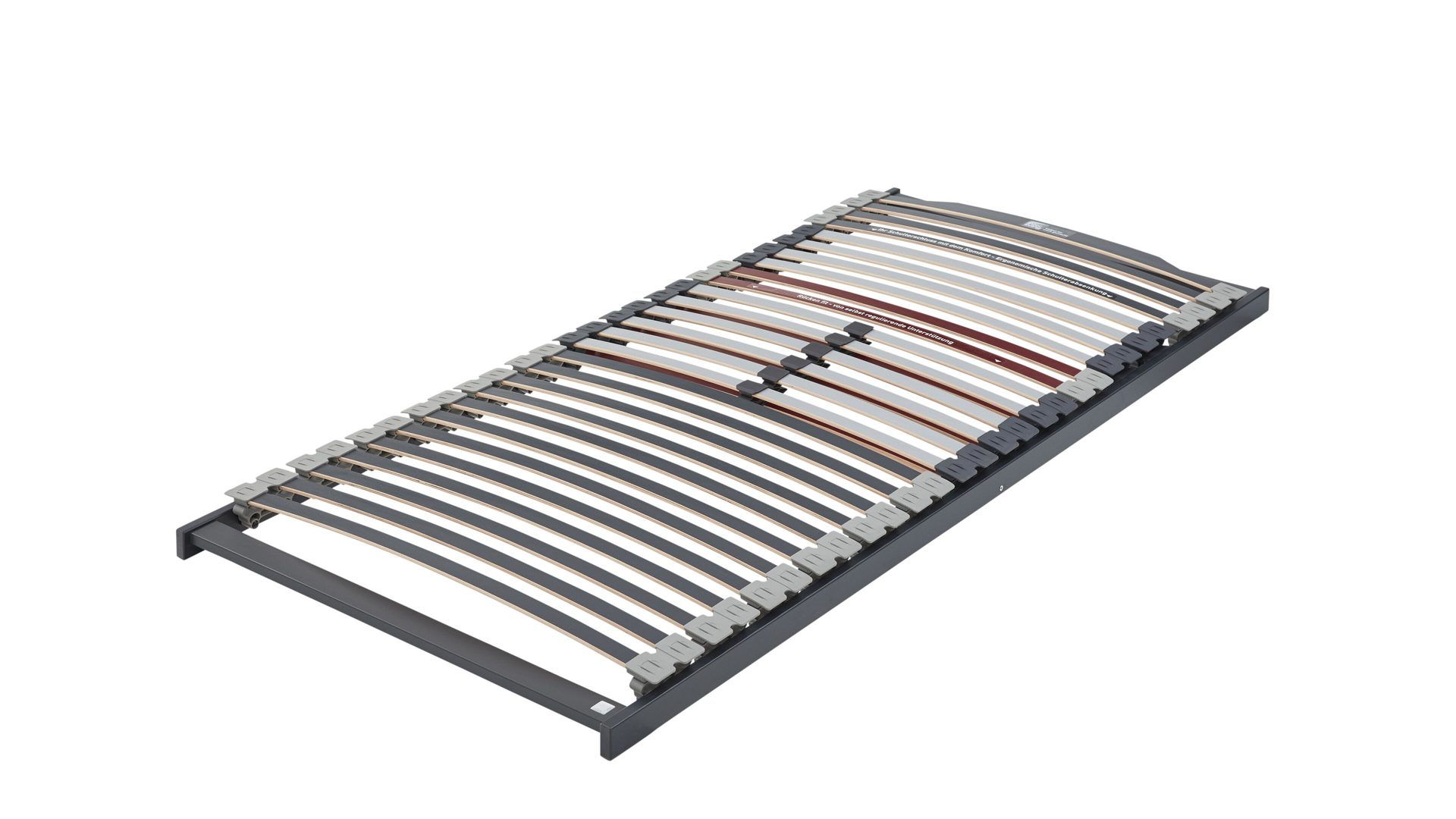 Auf insgesamt 28 extrastarken Federholzleisten aus Buchenholz findest du perfekten Liegekomfort. Die in elastischen Kautschukkappen gelagerten Leisten reagieren punktelastisch und verteilen die auftretenden Kräfte gleichmäßig auf die gesamte Rahmenkonstruktion – bis zu einem Körpergewicht von ca. 160 kg. So wird deine Matratze optimal gestützt und ihre Lebensdauer deutlich verlängert.