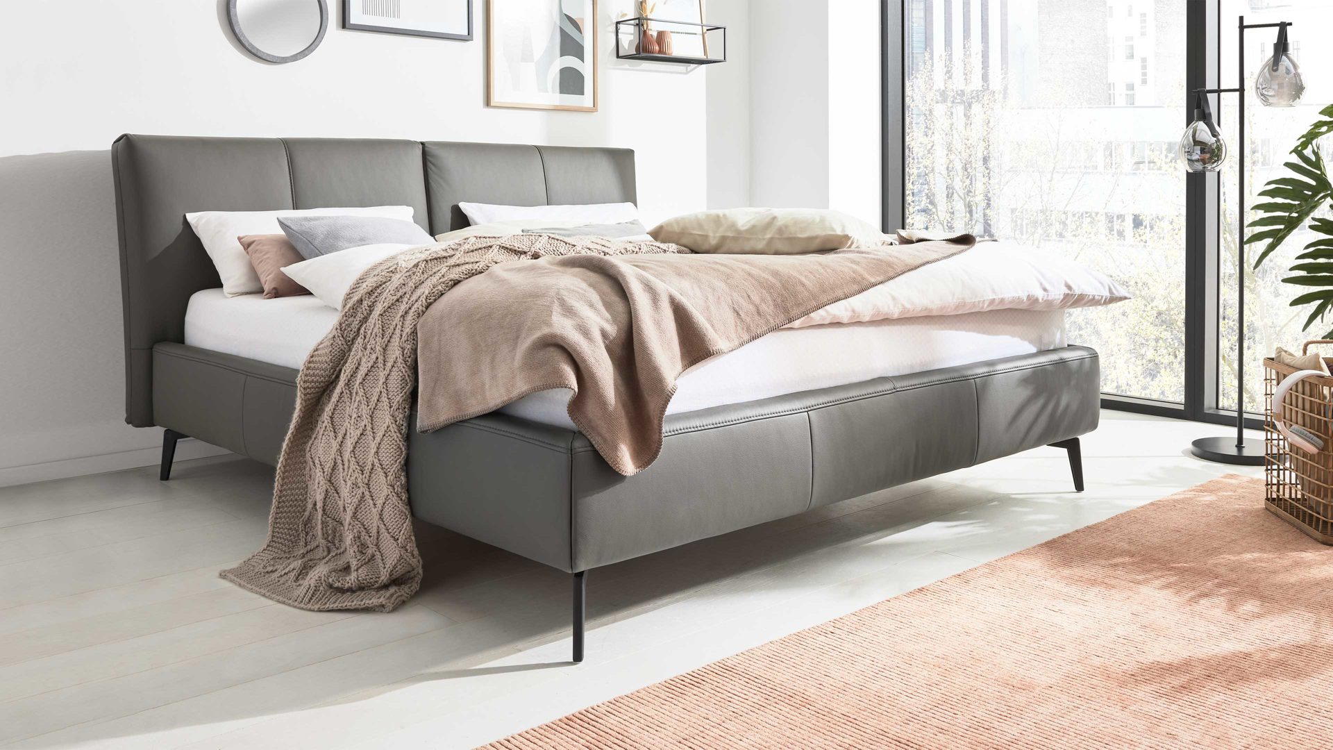 Das Polsterbettgestell aus der Interliving Polsterbett Serie 1416 verbindet zeitlose Eleganz mit maximalem Komfort und individueller Planbarkeit. Der grau pigmentierte Lederbezug verleiht deinem Schlafzimmer eine edle, warme Atmosphäre, während die schwarzen Metallfüße einen modernen, stilvollen Kontrast setzen.