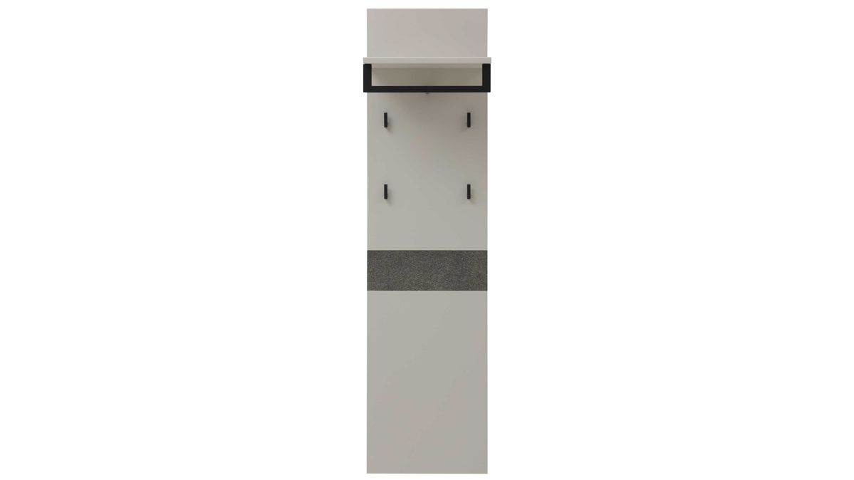 • Die Abbildung zeigt ein Wohnbeispiel, welches auch Dekoration sowie separat erhältliches Zubehör enthält. Im Lieferumfang enthalten ist eine Wandgarderobe INL-802 (rechts im Bild).