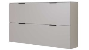Mit zwei großen Klapptüren und insgesamt vier Einlegeböden bietet dieser Schuhschrank großzügigen Stauraum für zahlreiche Paar Schuhe – übersichtlich, platzsparend und elegant gelöst.